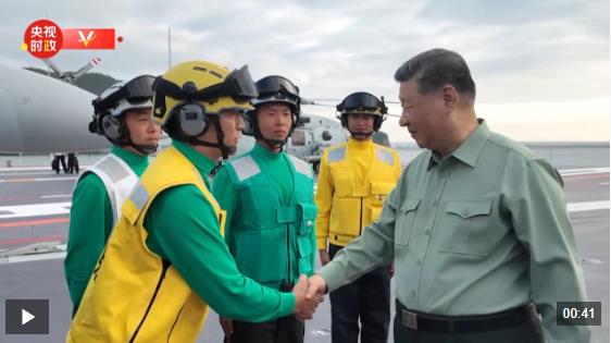我国第一艘电磁弹射型航空母舰福建舰入列授旗仪式5日在海南三亚某军港举行。中共中央总书记、国家主席、中央军委主席习近平出席入列授旗仪式并登舰视察。