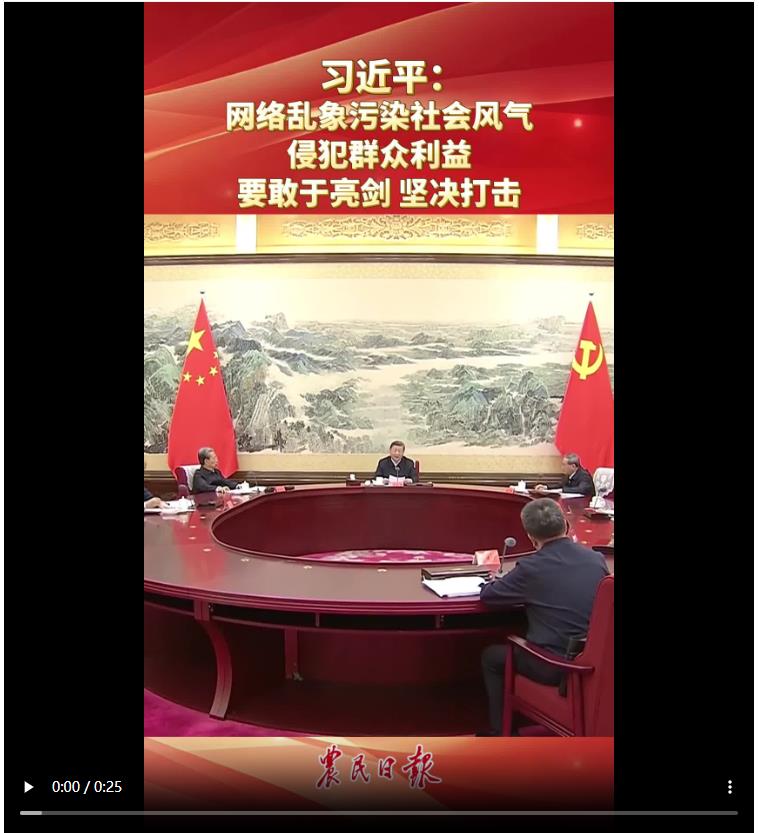 习近平:网络乱象污染社会风气 侵犯群众利益 要敢于亮剑 坚决打击