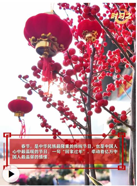 春节,是中华民族的传统节日。一句“回家过年”,牵动着亿万中国人最温馨的情愫。习近平总书记说:“我最大的心愿,就是大家都能欢欢喜喜过好年。”这句质朴的话语,蕴含着总书记深厚的人民情怀。