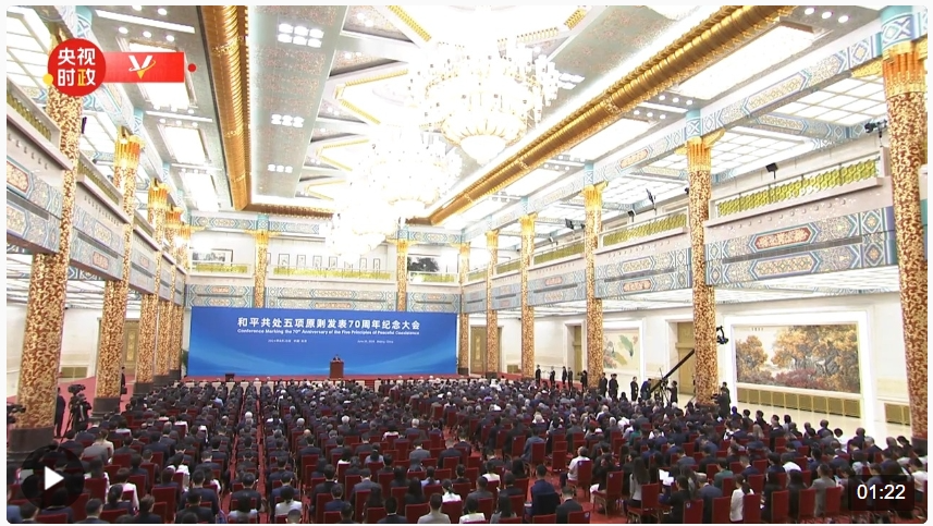 6月28日上午,和平共处五项原则发表70周年纪念大会在北京人民大会堂隆重举行。国家主席习近平出席纪念大会并发表题为《弘扬和平共处五项原则,携手构建人类命运共同体》的重要讲话。