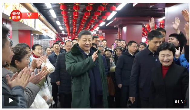 此后,从昆明新春购物博览会,到贵阳的合力惠民生鲜超市,从山西平遥古城南大街,到北京新发地农产品批发市场、天津古文化街,总书记多次通过实地考察、视频连线等形式关注节日期间市场供应情况。