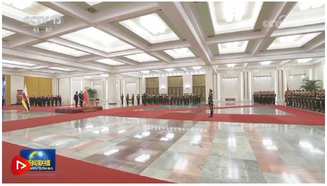 会谈前,习近平在人民大会堂北大厅为哈桑纳尔举行欢迎仪式。