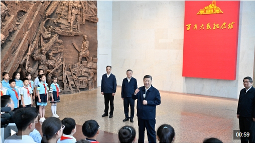 7日下午,习近平总书记来到山西省阳泉市,向百团大战烈士敬献花篮,参观百团大战纪念馆。在纪念馆大厅,习近平同青少年学生和纪念馆工作人员亲切交流。他对大家说,今天来到这里有特殊意义。七七事变是全民族抗战的开始,中国共产党是全民族抗战的中流砥柱,百团大战让全世界看到了中国共产党和中国人民抗战的意志和力量。我们坚持14年抗战,作出了巨大牺牲。前事不忘,后事之师。孩子们要争做民族的脊梁,一定要把我们国家建得强盛起来,要为全世界的和平作贡献。希望寄托在你们身上,未来是属于你们的。希望你们好好努力、奋发图强,做一个堂堂正正、光荣自豪的中国人。