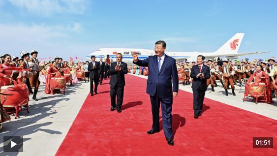 习近平率中央代表团抵达乌鲁木齐出席新疆维吾尔自治区成立70周年庆祝活动
