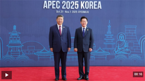 习近平主席抵达时,韩国总统李在明热情迎接。两国元首握手、合影,留下珍贵的“APEC瞬间”。随后,两位领导人微笑交谈,共同步入会场。