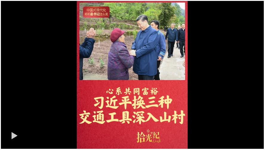 中国式现代化是全体人民共同富裕的现代化。2019年,习近平总书记换三种交通工具深入重庆山村,在同乡亲们座谈时强调,“发展一定要共同富裕,不能出现两极分化”。这是人民领袖的铿锵誓言,也是百年大党的价值追求。