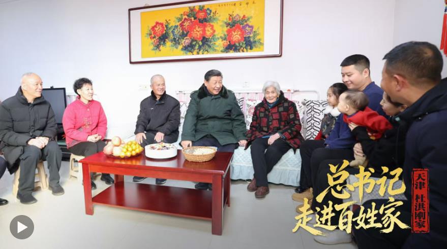 2024年春节前夕,习近平总书记来到经历过洪灾的天津市西青区辛口镇第六埠村,走进四世同堂的村民杜洪刚家,同一家人亲切拉家常,一笔一笔算灾情损失和灾后生产发展、就业增收账。习近平说,国泰民安,民安才能国泰,党中央和各级党委、政府时刻记挂着大家的安危冷暖,也希望乡亲们依靠自己的双手重建美好家园,创造幸福生活。