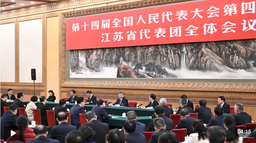 这是总书记2023年初在江苏全票当选十四届全国人大代表后,连续第四年参加本团审议。
