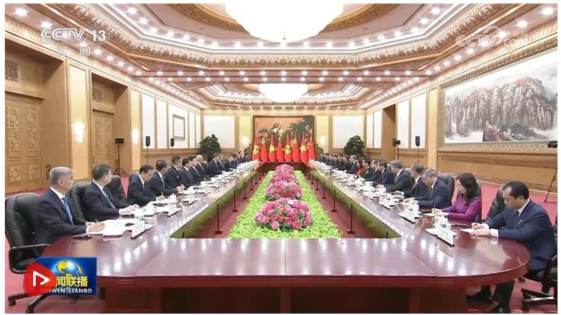 习近平再次祝贺苏林当选越南国家主席。习近平指出,你当选越南国家主席后第一时间到访中国,体现了你对发展中越关系的高度重视。相信在以苏林同志为首的越共中央坚强领导下,越南必将坚定走好社会主义道路,朝着建党建国“两个一百年”奋斗目标砥砺奋进。无论国际形势如何变化,中方始终将越南作为周边外交优先方向,愿同越方秉持初心、赓续友谊,团结协作、相互支持,继续按照“六个更”总体目标,高质量推进全面战略合作,加快构建更高水平具有战略意义的中越命运共同体,为推动构建人类命运共同体作出更大贡献。