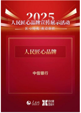 本届活动以“匠心铸魂 质启新程”为主题,面向各行业、各领域,旨在发掘各行业中坚持以匠心推动高质量发展、赢得市场与用户信赖的优秀品牌。其中,“人民匠心品牌”的评选历经两个月多轮审核,从质量、创新、实力、声誉、效益及责任等多维度进行综合评估。中信银行连续三年脱颖而出,体现了其在深耕金融服务、扎实品牌塑造上始终如一的匠心坚守。