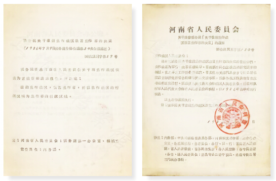 《关于撤销焦作矿区设置焦作市的决定》原文件