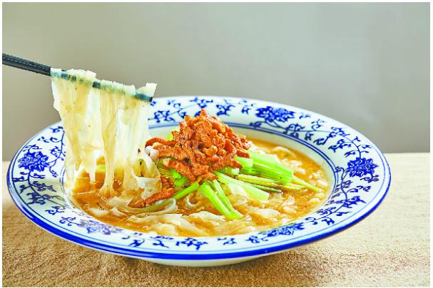 肉丝盖顶(肉丝带底),是长垣十大名菜,也是河南名菜、中国名菜,极具地方特色,在长垣流传数百年。2014年6月,河南地方标准《长垣烹饪技艺肉丝带底》通过河南省质量技术监督局批准。肉丝盖顶展示了长垣悠久的烹饪文化和高超的烹饪技艺,大长垣饭店更是专注制作20年,选用生态土猪的里脊肉,使用传统技艺现场制作纯绿豆粉皮。此菜集冷、热、荤、素于一体,粉皮吸收炒肉丝的汤汁,肉丝的热度烘香了粉皮中的麻酱、蒜泥,入口酸、辣、冲、爽、柔、弹、滑。