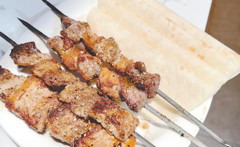 马家大爷牛肉面店的烙馍卷孜然羊肉。