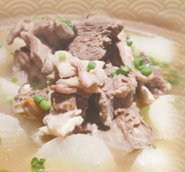 很多人都不敢尝试羊肉,因为怕羊肉有腥味。其实,只要选好食材,掌握一些烹饪技巧,就可以做出软烂无腥的羊肉。这道养生美食中的羊肉,是精选优质的黄河滩羊。制作时,先将羊肉切小块,白萝卜切成滚刀块,用秘制方式将羊肉去腥。锅中烧水,将羊肉焯水后捞出备用;锅中加水,放入白萝卜、胡椒等,中小火焖至酥烂透香,最后再撒上葱花。做好的砂锅羊肉不但香气四溢,而且口感软嫩、温润。羊肉的鲜美混合着白萝卜的清香,吃上一口,会让你有一种说不出的满足感。