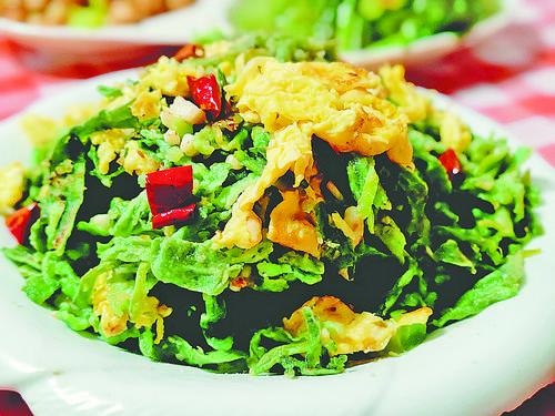 图② 鲜嫩的炒蒸菜。记者 陈东明 摄