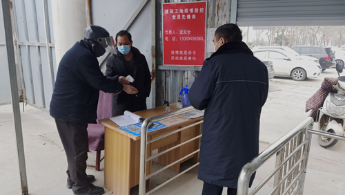 在我市解放区一家房地产施工工地外,一辆运送混凝土的商砼车恰好从大门进入工地,记者试着跟随进入,但被工作人员阻挡——此门“只允许车辆进入”,人员进出工地只能走员工通道。在扫描了“疫情防控检测点”张贴的二维码后,记者按照疫情防控流程进入到工地内,但只被允许在门岗处短暂逗留。