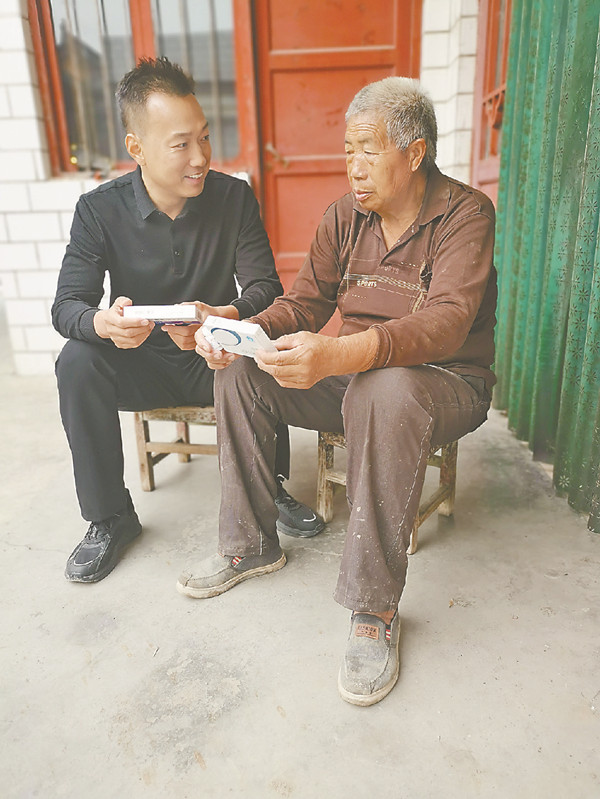 刘红旗给监测户马德义上门送药。宁江东 摄