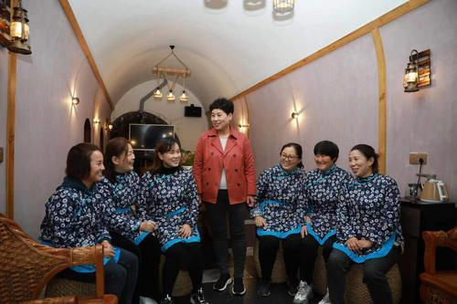 2019年5月,何翠萍通过村内公开招标承包了一片破落窑洞,按照“记忆乡愁 老家莫沟”总体思路,多地学习,树立了传统与现代发生碰撞的美学设计理念,修旧如旧,新旧并置,设计窑洞布局,打造出乡愁味道的特色窑洞民宿。为了实现共同富裕,何翠萍提议全民参与,短时间内竟吸纳23名妇女参加。历经200多个日日夜夜,莫沟大嫂创业服务基地的第一个孵化产品——望舒民宿落地了。修复后的窑洞不仅保留了原有的面貌,还凸显了冬暖夏凉的优势。
