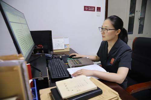 邢敏佳在撰写审判文书。记者 杨珂 摄