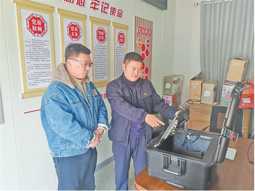 郑学烽(右)在讲解救援设备使用方法。杜挺勇 摄