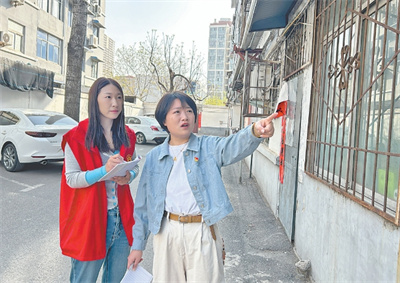 李琳(右)在辖区楼院开展走访排查。