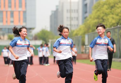 学生们在进行跑步训练。 记者 吉亚南 摄