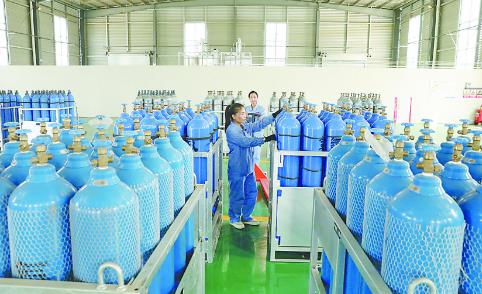 8月6日,河南鼎晖聚鑫化工有限公司生产车间,工人在有序生产。该公司位于焦作经济技术开发区,主要生产工业气体、医用氧和化学原料等。项目全部投产后,预计年可实现主营收入5亿元、利税8000万元。