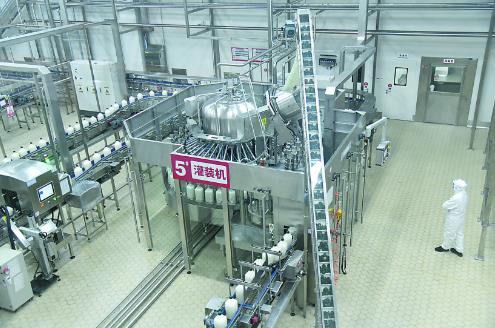 8月9日,大咖国际食品有限公司车间,全自动罐装机正在生产果浆。该公司是一家集研发、生产、销售、物流于一体的现代化茶饮供应链企业,有固体饮料、饮料浓浆、奶浆、果酱等40余种产品,年生产能力120万吨,国内市场占有率达10%。