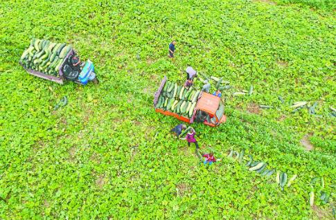 8月17日,沁阳市柏香镇上辇村,农民在田间收摘黑皮冬瓜。