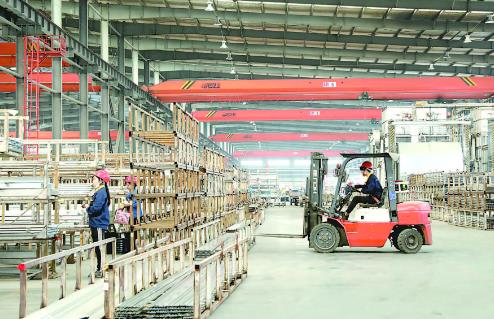 10月28日,位于焦作经济技术开发区的河南奋安铝业有限公司成品车间,“人工+机械”在忙着整理产品。该企业致力于铝合金型材的研发、生产和销售,是一家研发、生产高端铝合金型材的综合性现代化企业,集团总体产品市场占有率约27.6%,位居全国前五。