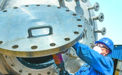 12月19日,位于修武经济技术开发区的河南多氟多智能装备有限公司工人在生产压力容器设备。河南多氟多智能装备有限公司高端压力容器智能装备制造项目总投资2亿元,经过紧张建设,目前项目一期已于今年3月份部分建成并投产,项目二期正在规划设计中,待项目全部建成投产后,年可实现营收5亿元,税收4000万元。