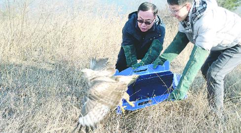 1月12日,4只珍稀鸟类戴上卫星跟踪器,在我市北部山区展翅高飞。这是市林业局组织市自然保护区和野生动植物保护中心开展的鸟类放归活动现场。
