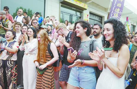 表演结束后,外国友人的领队用英文告诉大家,其中一名表演者叫韩烁,今年只有14岁。外国友人们纷纷惊呼,并热情地与表演者握手。“中国的黄河文化非常优秀,底蕴深厚。受文化的熏陶,这里的孩子很能吃苦,非常厉害。”来自意大利的Valeria Casali说。