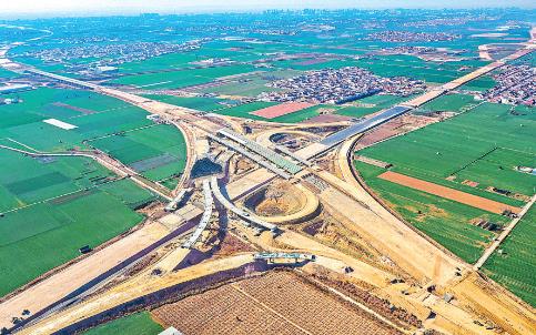 1月16日,由河南省公路工程局承建的焦平高速焦作至荥阳段项目二标郭庄枢纽互通A匝道路基填筑正在加快推进。