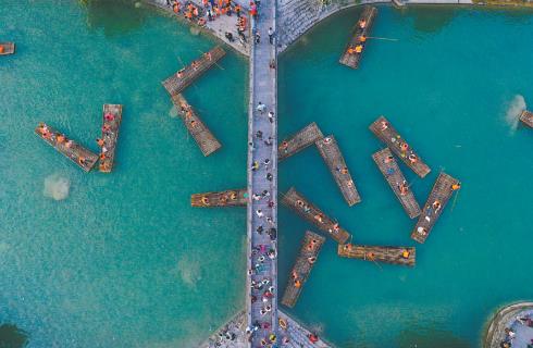 移步小寨沟,看到的是另一番充满趣味与诗意的景象。溪水潺潺,游人或乘坐竹筏漫游湖面,或体验桨板激起涟漪,充分感受“舟行碧波上,人在画中游”的意境。循着泠泠水声深入潭瀑峡,三步一泉、五步一瀑、十步一潭,情人瀑的柔美、丫字瀑的奇崛、不老泉的澄澈……串联成一条天然山水画廊。溪潭成群,清可见底,游鱼、细石历历可数,赤足涉水而行,沁凉之意瞬间驱散暑气,令人心旷神怡。