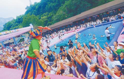 与此同时,云台山亲子戏水嘉年华也盛大开启,一场水上盛宴瞬间点燃夏日激情。走进云台山的小寨沟游人广场,上万平方米的清凉池宛如欢乐的海洋。水枪大战、泼水狂欢接连上演,水花四溅中满是欢声笑语;动感女团带来活力四射的舞蹈,滑稽小丑与游客亲密互动,现场氛围被彻底点燃;风驰电掣的机车表演、色彩斑斓的马卡龙系皮卡展示以及充满欢乐的彩虹跑等活动,将潮玩元素与自然风光完美融合,为云台山增添了独特魅力。这场集清凉、潮玩、亲子互动于一体的夏日狂欢盛宴,让游客沉浸式感受戏水活动的独特魅力,留下难忘的夏日记忆。