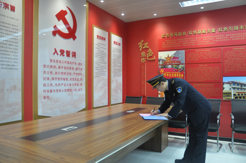 全体宣誓人面向国旗,同唱中华人民共和国国歌,齐唱《河南卫生监督之歌》。中心党总支书记、主任刘勇领诵卫生监督员誓词,其他宣誓人跟诵誓词,“我是卫生计生监督员,是人民健康的卫士,我郑重宣誓:忠实履行法律赋予的职责,严格执法,恪守职业道德,廉洁奉公,不徇私情,人民的利益高于一切,无愧于闪闪的国徽,不负人民的重托。”宣誓后,执法人员在卫生监督员誓词上进行签字。