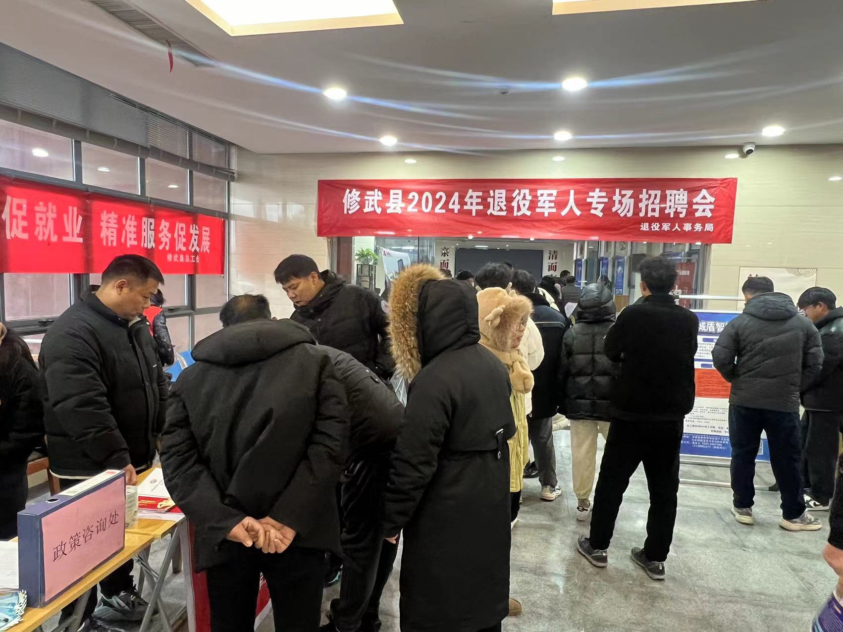 新春送岗,就业起航。为推动退役军人实现更充分更高质量就业,把党和国家关心关爱退役军人的各项要求落到实处,提高退役军人获得感、幸福感。2024年修武县退役军人事务局提前谋划,抢抓春节退役军人及家属外出务工返乡时机,2月20日联合县人社局组织开展“春风行动暨就业援助月”专场招聘会,为退役军人及家属“送问候、送政策、送岗位”,为广大退役军人牵线搭桥,推动退役军人充分就业。