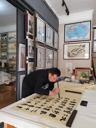 中国书法家协会会员、我市书法家段思云正在进行书法创作。本报记者 马允安 摄