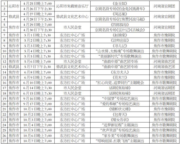 焦作市2024年“中原文化大舞台”演出安排表