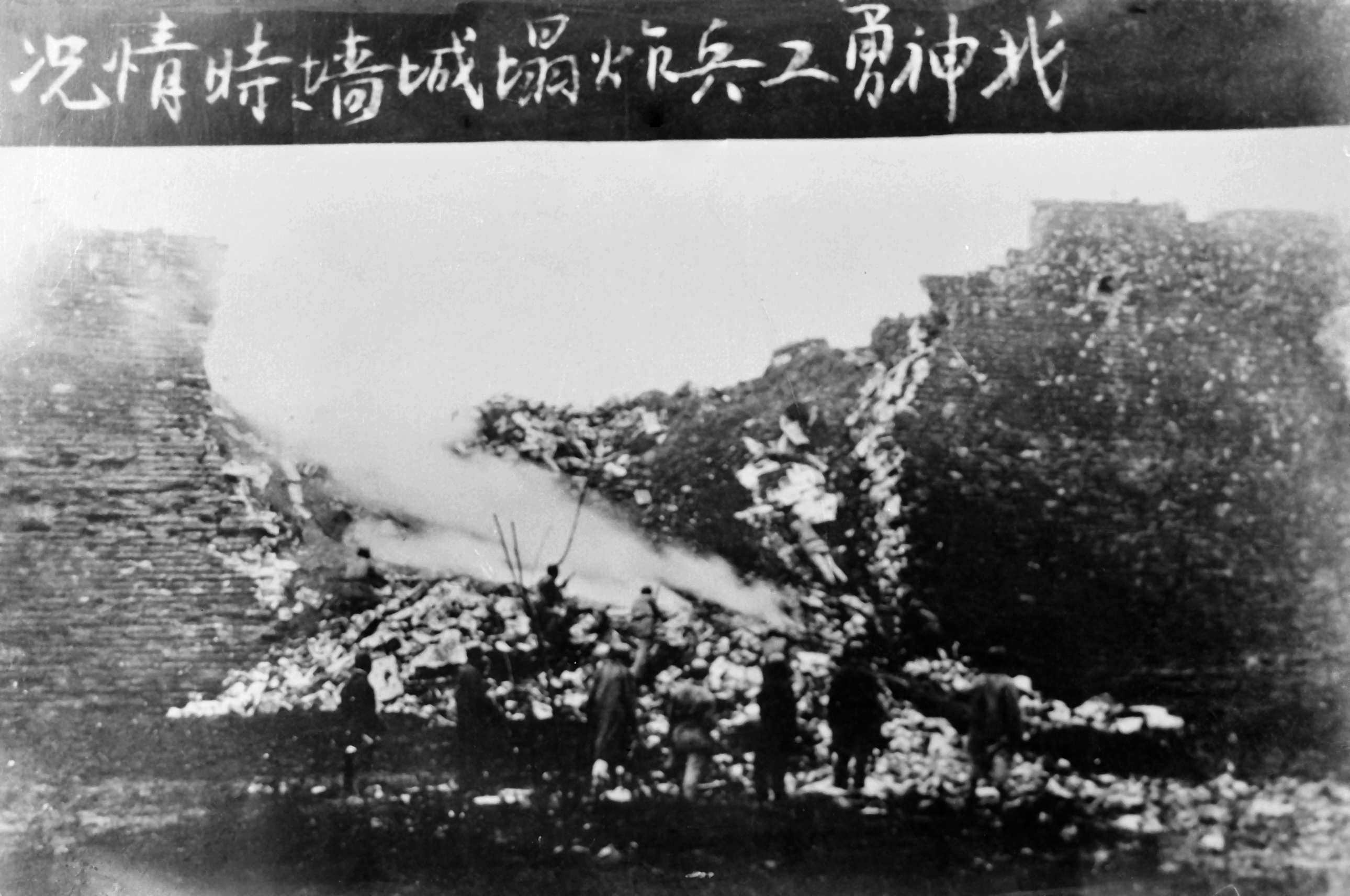 沁阳战役,我军攻破沁阳城墙的情形。