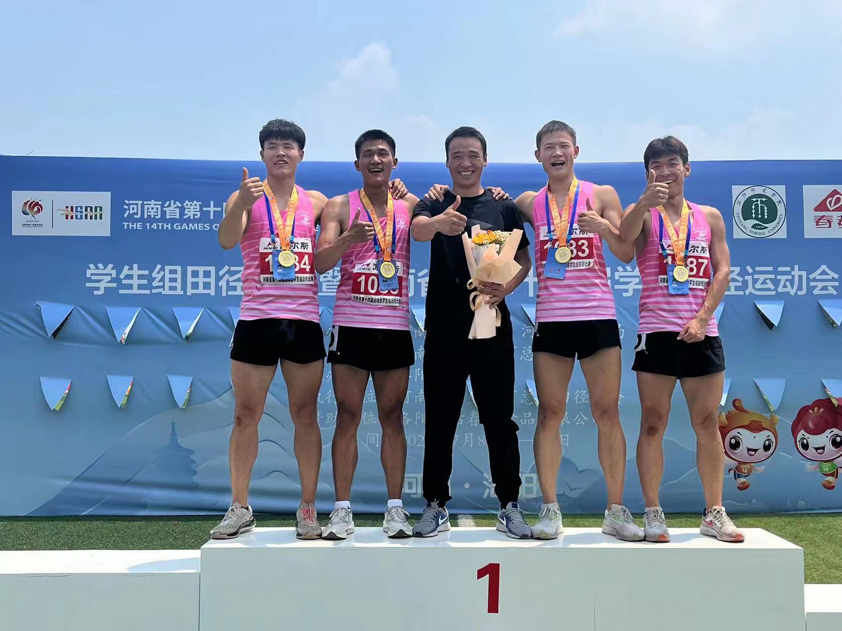 在4×100米接力赛决赛中,预赛第四名的焦作师专队发起了绝地反击,以42秒43的优异成绩战胜省内诸多一流高校强队,将4×100米团体项目冠军收入囊中。很快,在4×400米接力决赛中,焦作师专代表队最终以3分22秒12夺得桂冠,将第二个团体冠军拿下。