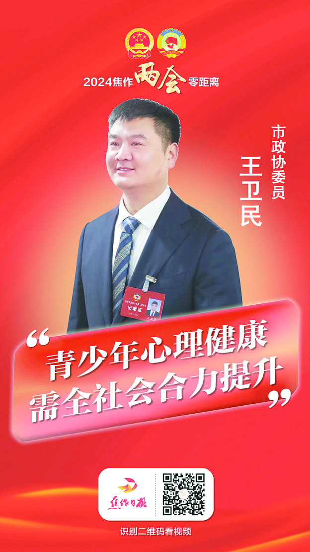 “随着社会快速发展,青少年面临着越来越大的心理压力和挑战,学业、人际关系、未来规划等因素,都有可能对青少年的心理健康产生消极影响。”多年来,王卫民一直关注青少年心理健康发展情况,赴北京、上海等地深入学习先进经验,积极发挥自身优势,组织拍摄了“关注青少年心理健康”的公益视频,呼吁政府、学校、家庭和社会各界共同努力,携手为青少年创造一个更加阳光健康的成长环境。