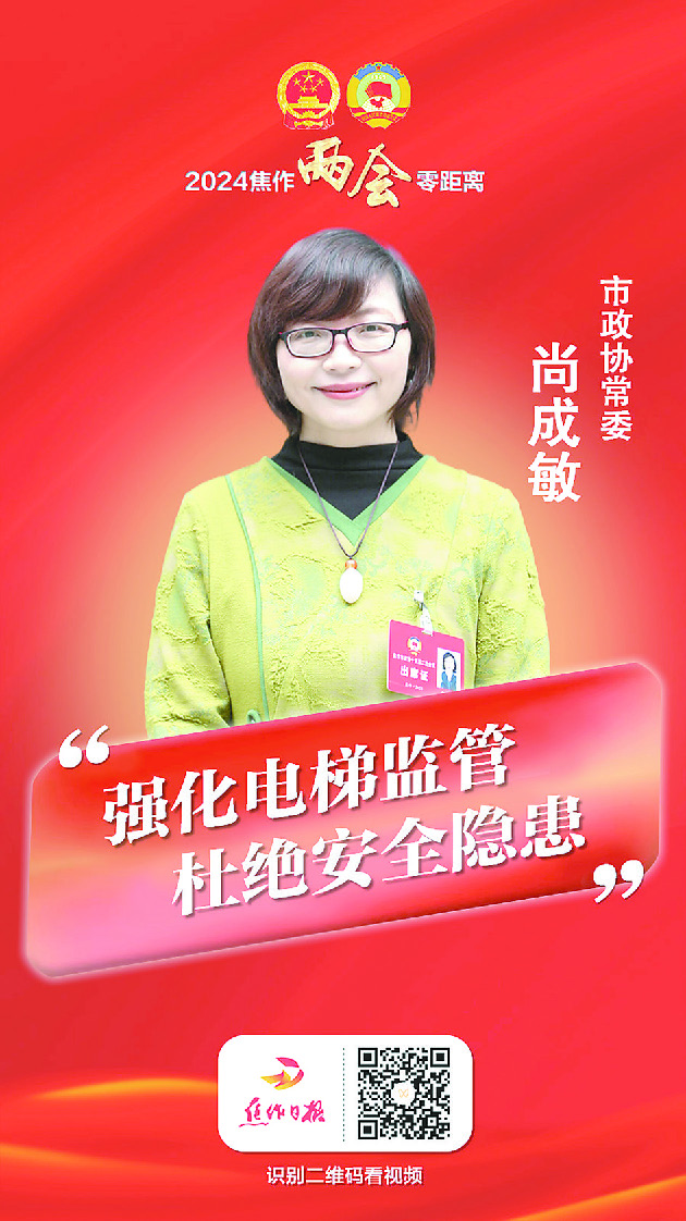 “作为百姓‘出行第一步,回家最后一程’的垂直交通工具,电梯安全事关百姓生活和社会和谐稳定,也是社会管理创新的重要内容。”昨日,市政协委员、市作家协会主席尚成敏说。