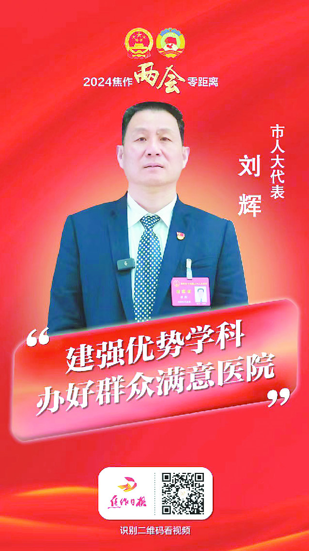 “今年政府工作报告提出加快建设健康焦作,彰显了为民、惠民、利民深厚情怀。”市人大代表、中站区人民医院院长刘辉表示,医疗卫生事业关系千家万户,将始终把患者放在心上,大力加强医院文化建设、质量建设、特色专科建设和人才队伍建设,全面提升医院的综合实力,为广大患者提供高品质医疗服务。
