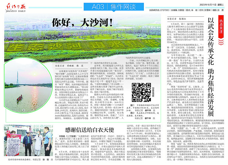 大沙河生态环境质量的不断改善,绘就了“太行山前百鸟飞,水碧花红鱼儿肥”、人与自然和谐共处的生态画卷。这些变化极大改善了城市生态环境,提升了城市品位,拓展了城市发展空间,提高了城市价值,不但为焦作转型发展提供了动力,也为黄河流域生态保护和高质量发展提供了有力支撑,使人民群众在享受“生态红利”的同时,收获了满满的幸福感、安全感!