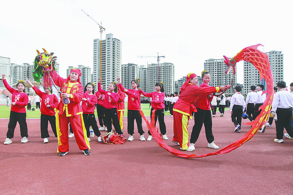 正抛、反抛、反盘……3月28日,博爱空竹舞龙艺术团将精彩的非遗舞龙带进博爱县新华小学,让文化传承“活”起来。