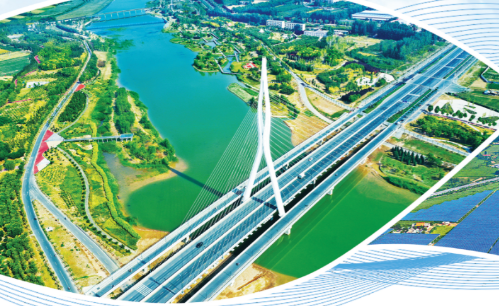 图① 民主南路大沙河桥飞架南北,在绿地碧水映衬下犹如美丽画卷。