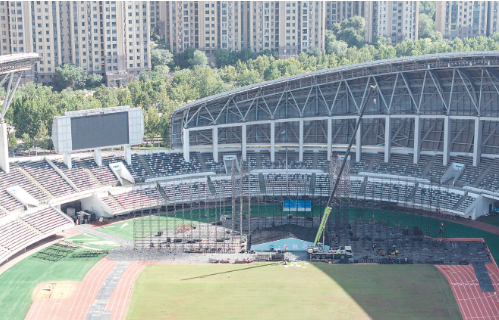 图②③ 市太极体育中心体育场相关设施加紧施工。