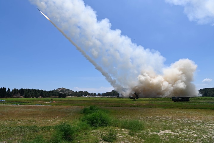 东部战区陆军某旅组织远火分队在台湾海峡进行实弹射击,完成精确打击任务。这是发射现场(2022年8月4日摄)。新华社发(赖桥泉 摄)